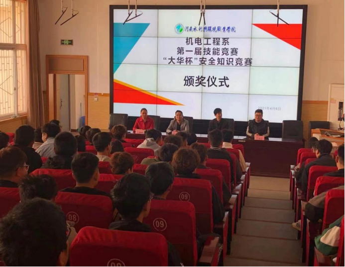 决赛于3月30日中午在南教1、2、3机房拉开帷幕。主持老师一声令下,决赛号角正式打响,同学们认真紧张的氛围一直延续到比赛结束。颁奖仪式于4月6日中午在北教三阶举行,武汉大华广通科技有限公司总经理汪川川、系党总支书记王建军、系主任王利卿、系党总支副书记王远志及全体裁判老师参加,共同为获奖同学颁发证书和奖品。至此,机电工程系“大华杯”安全知识竞赛在鼓掌声和欢呼声中画上了完美的句号。