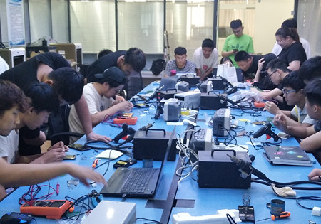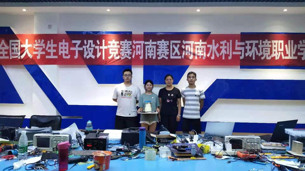 本竞赛采取网上发题方式,参赛学生需要在4天3夜的时间内完成查阅资料、设计方案并仿真、购买元器件、焊接电路、软件调试、撰写设计报告等过程,并最后提交设计的作品及设计报告。本次竞赛为我校首次参加,由于前期无技术基础、无经验参考,参赛学生及指导教师利用暑假期间,通过合理规划、紧张有序的培训与学习,培训期间,师生共同学习、提高,废寝忘食,逐步提升理论知识及专业技能。在学生培训及竞赛期间,机电与信息工程系武凤翔主任、王利卿副主任给予大力支持,提供良好的实验室条件,并配以优秀的指导教师,为取得优异的成绩打下坚实的基础。