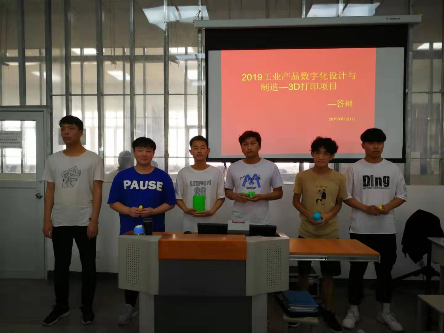 2019年6月21日上午10点,机电与信息工程系18机电专业《工业产品数字化设计与制造(3D打印)》课程设计答辩在综合楼502智能制造工程实训室进行。机电与信息工程系主任武凤翔、副主任王利卿以及刘艳、王明杰、李阁等几位老师出席了答辩会。