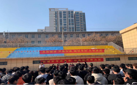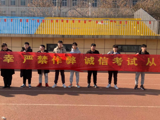 首先,王利卿引用名言名句给同学们分享了诚信为人、诚信做事的重要性;王远志给同学们再次解读了《河南水利与环境职业学院学生违纪处理实施细则》中关于考试作弊违纪的成本,呼吁同学们认真备考,勿存侥幸心理。然后,学生代表带领全体学生举起右手庄严宣誓:承诺会自觉遵守考试纪律,公平参与考试竞争,珍惜名誉、诚信做人,以良好的心态,出色的发挥,考出自己最满意的成绩,塑造自己纯净的灵魂,树立班级文明的形象!最后,全体学生依次在横幅上签上自己的名字,表明“诚信考试,从我们做起”的决心。