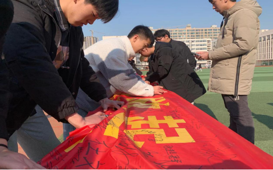 12月21日中午,机电工程系举办“诚信考试”横幅签名活动,党总支书记王建军、系主任王利卿、党总支副书记王远志、系副主任李戈、辅导员和各班学生代表300余人参加了此次活动。