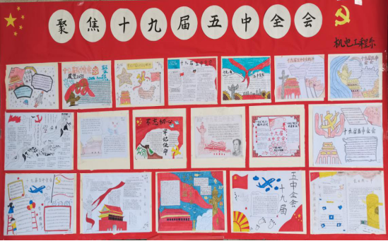 为进一步把广大同学的思想和行动统一到党的十九届五中全会确立的新思想、新论断、新目标、新要求上来,机电工程系于12月19日-12月23日举办了“聚焦十九届五中全会”主题优秀手抄报作品征集活动。