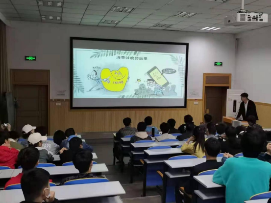 赛场上,两个年级学生分区而坐,旁征博引,论据充分,使用了大量的数据和事例论证自己的观点,条理清晰,充分展现出当代大学生的敏锐观察能力、激扬的青春活力。随后,19级代表通过互动与同学们讨论了一些生活中不理性的消费现象,加深了同学们对不合理消费心理及行为的认识;20级代表讲解了大学生过度消费导致严重后果的真实案例,进一步深化了同学们理性适度消费的意识,呼吁同学们树立正确的消费观念。