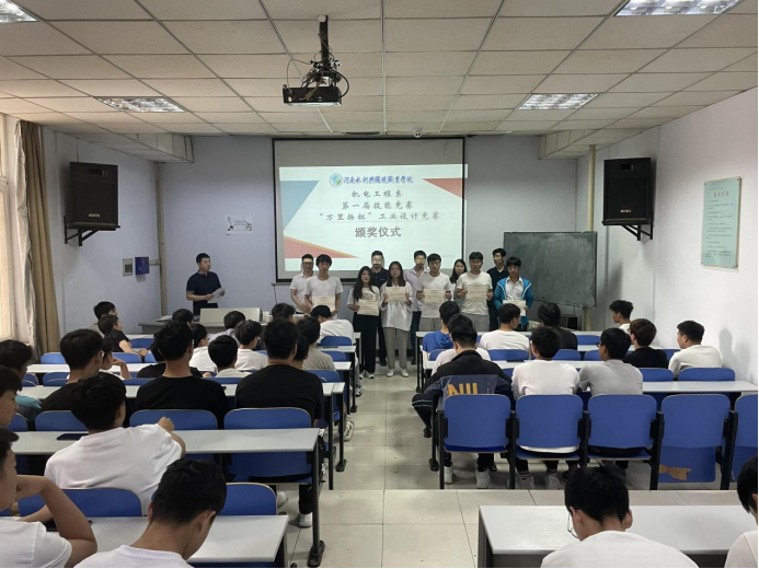 竞赛于4月28日中午在综合楼机房举行。颁奖仪式于5月21日中午在实验楼一阶举行,系党总支书记王建军、系党总支副书记王远志及全体裁判老师参加。仪式上,王远志表示本次大赛是校企合作的形式之一,同学们要在校期间积极参加各类活动,提前接触企业,了解企业文化,为后续的就业打下坚实的基础;郑武强介绍了万里扬企业和订单班的基本情况。最后各位老师共同为获奖同学颁发证书和奖品并合影留念。