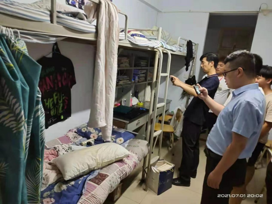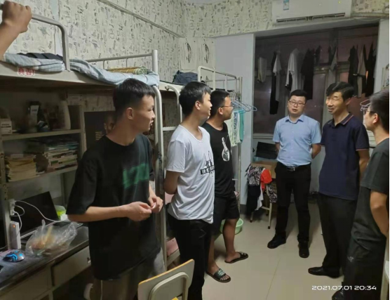 为了切实保障同学们的生命和财产安全,维护校园社会大局稳定,为建党百年营造良好氛围。机电工程系党总支书记王建军、副书记王远志和全体辅导员老师于7月1日晚走进学生宿舍组织开展了一次全面深入的地毯式校园安全风险隐患大排查大整治。
