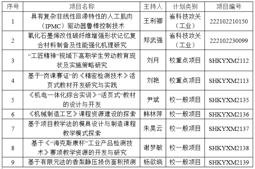 【喜报】机电工程系省级科技计划项目及校内科研项目立项数双双创历史新高
