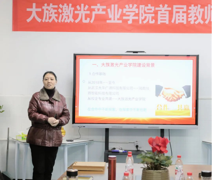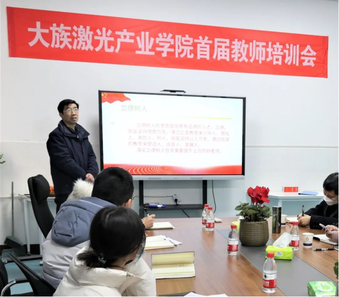 为进一步提高教师教书育人能力,培养高水平的师资团队,2月2日上午,河南水利与环境职业学院大族激光产业学院召开首届教师培训会。河南水利与环境职业学院机电工程系主任、大族激光产业学院理事会理事兼产业学院院长王利卿,河南水利与环境职业学院机电工程系党总支书记、大族激光产业学院理事会理事兼产业学院副院长王建军,河南水利与环境职业学院机电工程系副主任、大族激光产业学院副院长李戈,河南川扬智能科技有限公司董事长、大族激光产业学院理事会副理事长汪川川,及授课专家和产业学院参训教工等出席开幕仪式。