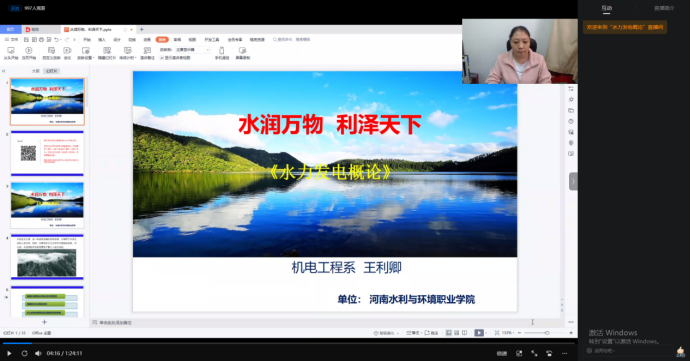 机电工程系举行的教学公开课活动于11月15日开始了,为期一个月。王利卿教师于2022年11月19日在线上进行《水力发电概论》的公开课教学,观看人数997人,点赞上万次。为我系师生提供了一个开阔眼界、了解水力发电知识的机会,机电系及外系无课教师、学生均参与听课。学生学习积极性高,教学现场氛围浓厚,教学效果好。为我系疫情期间的教学活动增添了新的色彩!