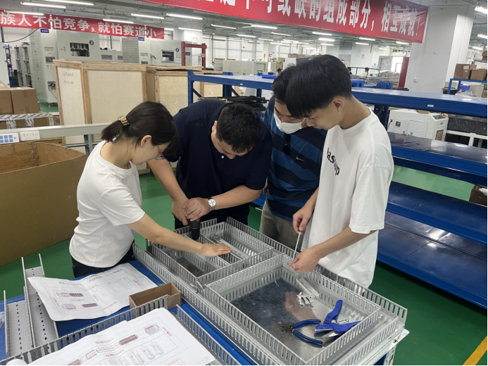 为积极响应国家关于加强职业教育师资队伍建设的号召,提升教师的专业实践能力和教学水平,更好地服务学生就业,提高校企合作的契合度,在学校领导的大力支持下,系主任的有序指导下,企业的高度配合下,2024年7月8日-2024年7月19日,机电工程系电气自动化技术专业群三个教研室的8名教师,在郑向歌老师带队下,赴深圳市大族锂电智能装备股份有限公司进行企业实践,,此次活动旨在通过企业实践,促进教师理论与实践相结合,培养出一支既懂教学又懂生产的“双师型”教师队伍。