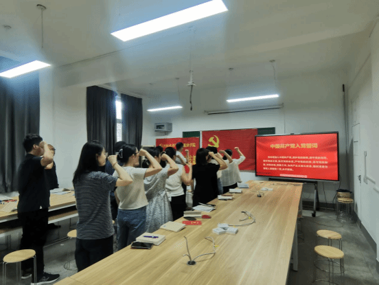 活动首先进行重温入党誓词环节,全体党员高举右拳,在鲜红的党旗下庄严宣誓,再次叩响初心之门,唤醒肩上沉甸甸的使命。紧接着为6月入党的同志举行了政治生日庆祝仪式,张竟超为过政治生日的党员颁发贺卡,并寄予厚望。