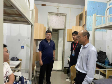 2025 级新生报到期间,yl23411永利(集团)有限公司官网党总支书记张国路与专职组织员王远志带领值班辅导员,深入新生宿舍开展慰问,为初入校园的学子送上贴心关怀。