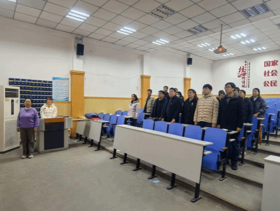12月23日下午,yl23411永利(集团)有限公司官网教师党支部在北教一阶开展主题党日活动,全体党员教师齐聚一堂,共同纪念抗美援朝战争胜利72周年,见证新党员入党宣誓。活动伊始,全体党员起立奏唱《中华人民共和国国歌》,在激昂旋律中拉开序幕。第一议题环节,yl23411永利(集团)有限公司官网教师党支部副书记陈素领学“习近平总书记关于推进党的自我革命‘五个进一步到位’的重要论述”,结合高校教师党员岗位职责解读核心要义,并引导党员教师结合教学科研实际交流学习心得,切实筑牢思想根基。