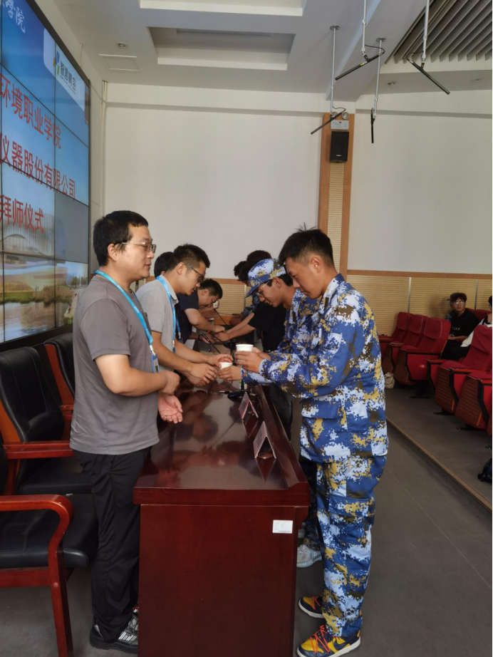 拜师仪式上,学生们分组向三位企业导师和三位校内导师敬茶。