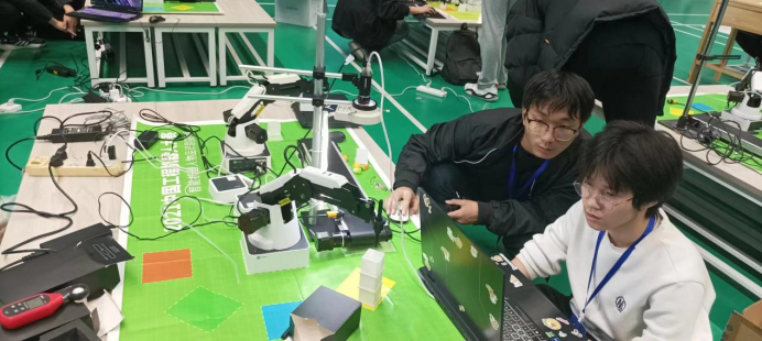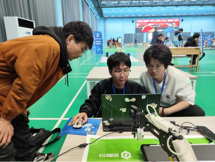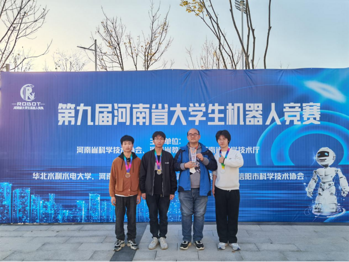 11月19日,由河南省科学技术协会、河南省教育厅、河南省科技厅联合主办的第九届河南省大学生机器人竞赛在华北水利水电大学江淮校区举行,来自全省69所高校的527支参赛队伍师生参赛,共享这一大学生科技创新盛事。我校机电工程系由李昱亮、张钧宇两位老师指导,22机电2乔砀砀,22智控2黄同同,22智控2陈凯鹏三名学生组建的参赛队在“智慧分拣”赛项夺得冠军杯。