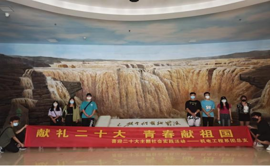 为进一步强化思想引领,激发学生爱党、爱国、爱社会主义的热情,充分展示我系学生昂扬向上、奋发进取、团结拼搏的精神风貌,引导青年学生感党恩、听党话、跟党走,以实际行动迎接党的二十大胜利召开,让青年学生在生动实践中受教育、长才干、作贡献,8月7日上午机电工程系团总支书记刘月带领系团学干部在郑州市黄河博物馆开展“献礼二十大,青春献祖国”喜迎二十大主题社会实践活动。