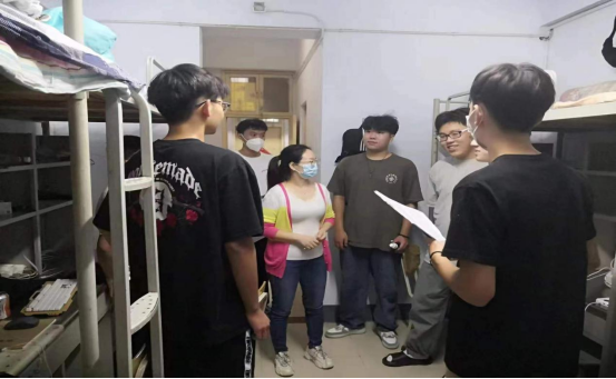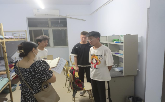 新学期,新作风,新姿态,迎新生。为了进一步了解2022级新生宿舍生活情况,帮助同学们尽快适应新环境,9月16、17日晚,系书记王建军、副书记王远志、全体辅导员对新生宿舍进行了走访。