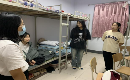 走访中,老师们仔细查看新生住宿环境,询问新生生源地、民族、家庭情况、生活习惯及兴趣爱好,鼓励新同学积极与本班同学沟通交流,团结友爱,互帮互助,尽快转变角色,适应大学生活,以更加饱满的热情投入到今后的学习与生活中去。强调要有组织,有纪律地做好宿舍安全、卫生等工作,养成良好的学习和生活习惯,明确学习目标,做好大学规划,积极参加学校的各项活动,在实践中锻炼自己、提升自我、立志成才,成为一名优秀的大学生。