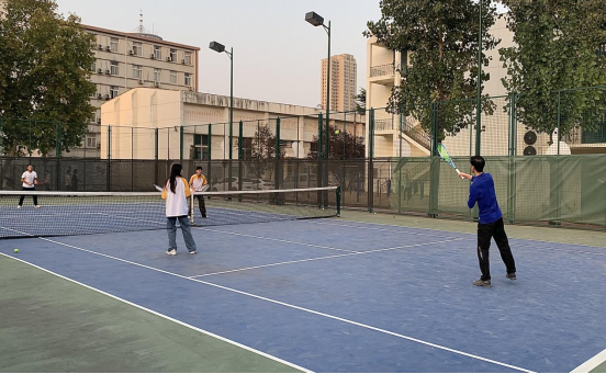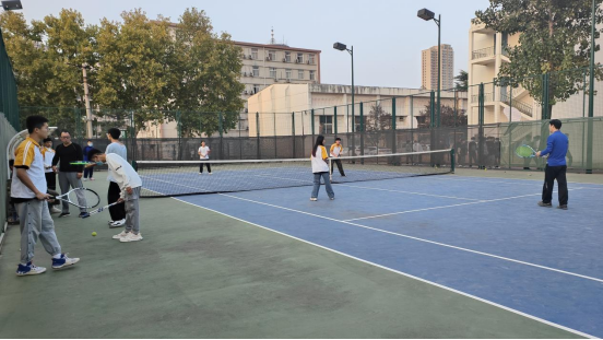 网球场上,参赛师生英姿飒爽,全身心投入,本次网球赛是我系第一次举办的师生网球赛,展现了老师和同学们热爱生活、热爱运动的精神面貌,拓宽了老师与同学之间的沟通渠道,在场所有参与者们都收获了运动的快乐。同时,另一边的羽毛球场上也呈现了一场激烈的对抗。比赛中,队员们奋力拼搏,挥汗如雨,不断出现精彩的拉球与扑杀等场面。