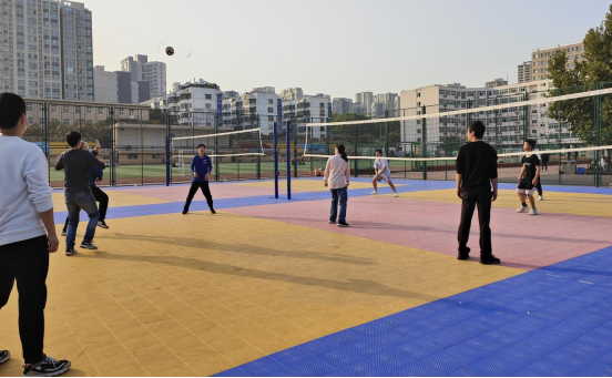 本次活动我系全体留校值守老师轮番上场,与同学们进行了多个项目的切磋和交流。比赛正式开始后,排球场上的参赛队伍发扬团队精神,积极配合,你来我往,拦网、传球、扣杀......两个队伍你追我赶,比分交替上升,一次次配合默契的传球,精彩不断,难分高低。
