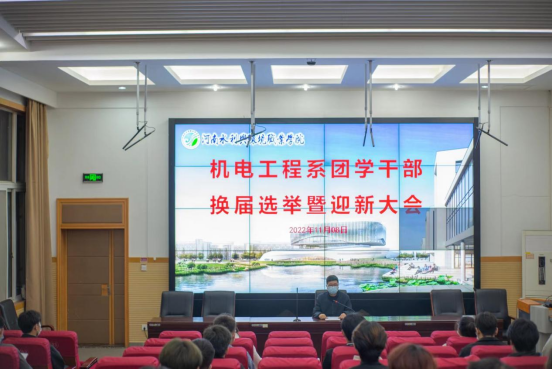 11月8日,机电工程系在北教三阶召开第三届团学干部换届选举暨迎新大会。系党总支书记王建军、主任王利卿、副书记王远志、在校学管老师及部分团学干部参加大会。