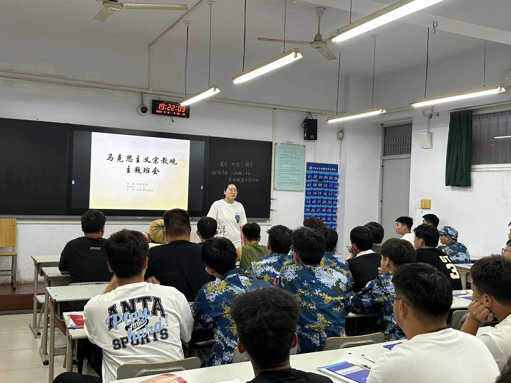 入学教育系列主题班会主要从预防电信诈骗、马克思主义宗教观、远离“非法”校园贷和大学生学习生活导航四个方面开展。班会上,辅导员首先向全体新生表示热烈欢迎,并向学生详细介绍了校园整体情况、全面细致地解读校规校纪,然后要求学生做好入学规划,学会自立,接受并且适应大学的授课方式,积极参加课余活动,从心理上及时进行角色转化。最后,辅导员与全体新生进行充分地交流,鼓励大家积极参与班委竞选活动,在学历、技能、人格、友情等多方面积极探索,根据学生们踊跃提出的问题,并给出了关于学习、生活、职业的具体建议,现场气氛活跃。