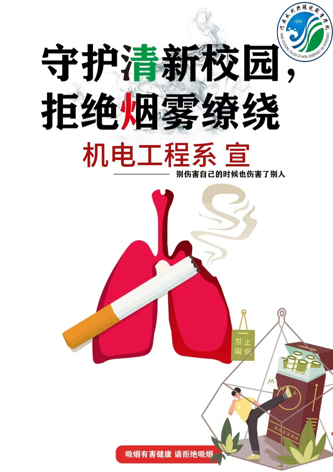 为营造文明美丽的校园环境,给全校师生创造一个舒适、健康的学习和工作环境,同时引导学生树立正确的健康观念,培养健康的生活方式和行为习惯,机电工程系团总支于11月6日组织开展了为期三天的线下“无烟校园,青春同行”禁烟控烟系列活动。