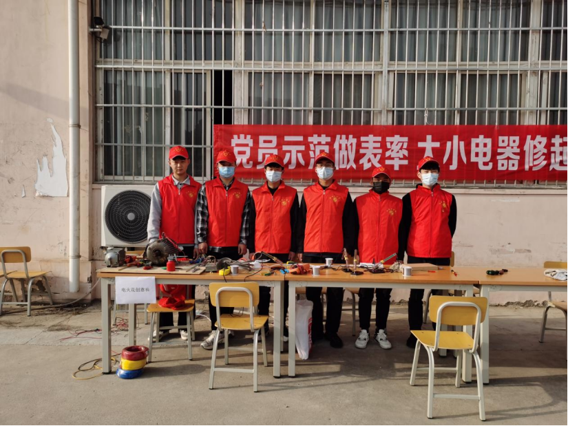 2022年3月27日下午16时,河南水利与环境职业学院机电工程系电火花创意社一行十几人在校园综合楼下,开展了“大小电器修起来”的活动,在这场活动中,有的老师拿来了家里的电磁炉,有的老师推来了自己的电动车,同学们也拿着台灯,风扇,电脑来到这里。经过了社团成员的努力,帮老师和同学们解决了问题,受到老师和同学们的好评,收获满满。