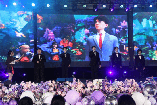 晚会在热血沸腾的乐队联唱《逆战》《着魔》中震撼开场,瞬间点燃现场气氛。独唱《迷途羔羊》以深情演绎寄语毕业生告别过往、阔步新程;舞台剧《红包迷局》通过诙谐剧情揭示校园诈骗陷阱,兼具警示意义与观赏性;合唱《世界赠予我的》以悠扬旋律唤起青春记忆,勾勒出生活的美好与挑战;戏曲《穆桂英挂帅》将传统唱念做打与现代舞台美学创新融合,展现中华戏曲的独特魅力;相声《兄弟情深》以风趣对白勾勒同窗情谊;街舞《whiplash》以动感舞姿诠释青春活力;合唱《鹿be free》作为经典动画主题曲,以温暖励志的旋律传递追梦力量,引发全场共鸣;话剧《八十一难》以创意改编重现经典篇章,展现团队协作精神;唱跳《像你这样的朋友》带领观众重温校园情谊的珍贵瞬间。晚会最终以《是老师是学生》《再见》两首合唱深情谢幕,在光影交织中定格青春记忆。