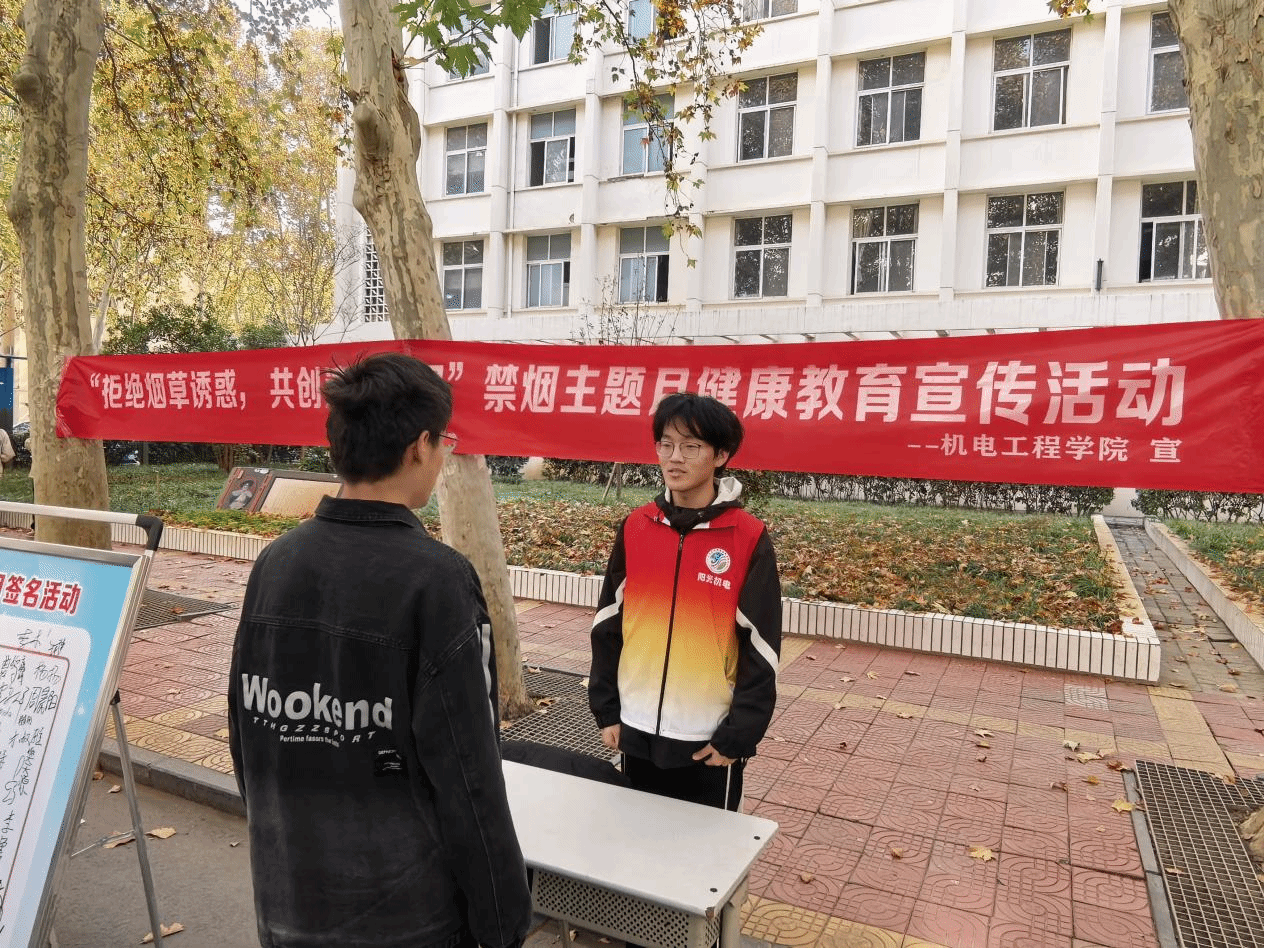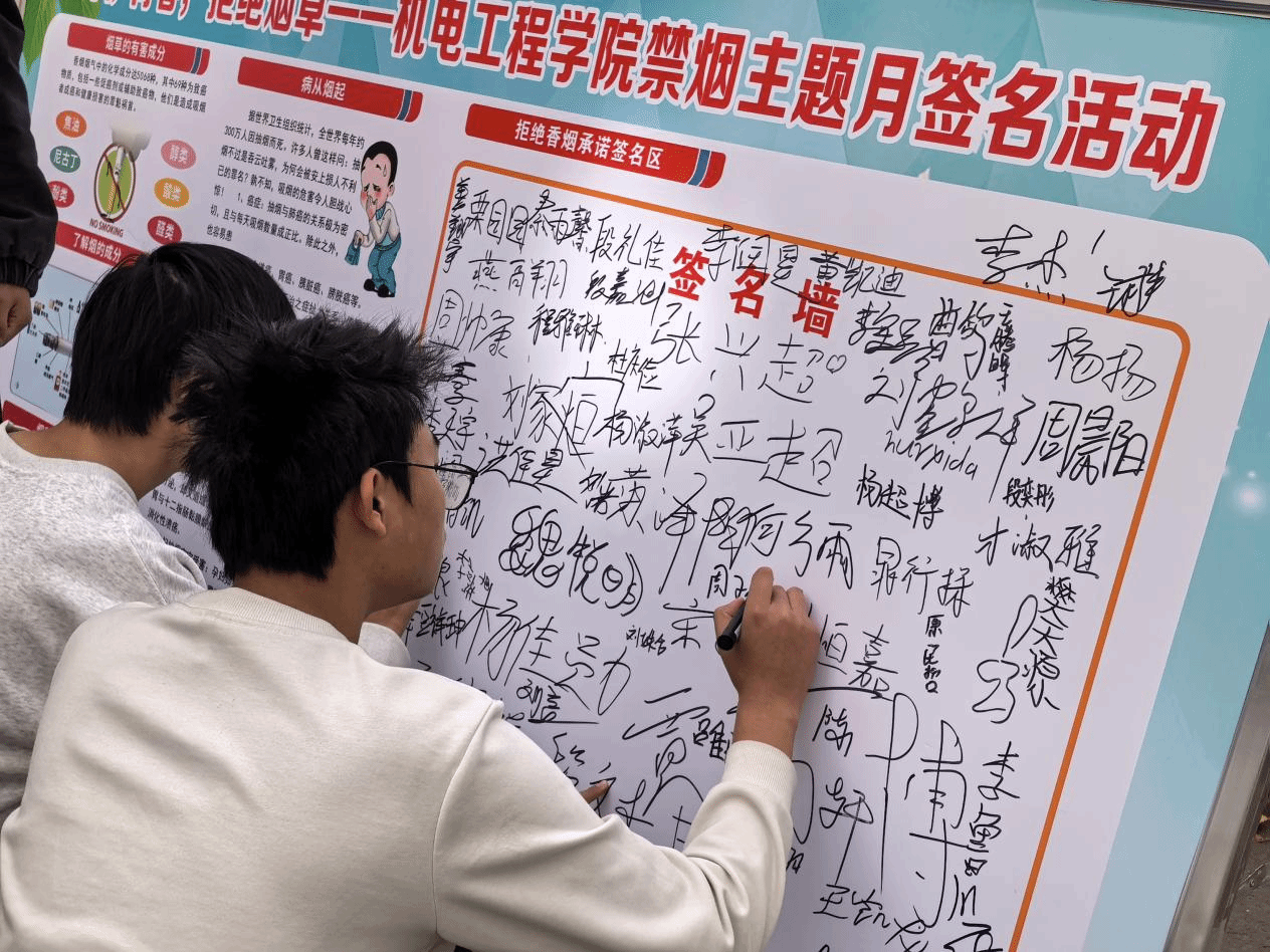 此次禁烟主题宣传活动,不仅让机电学子深化了对烟草危害的科学认知,更有效增强了健康生活意识与社会责任感,凝聚起 “人人拒烟、共建无烟校园” 的思想共识。下一步,学院团总支将持续开展健康主题教育,助力同学们养成良好生活习惯,以饱满的精神状态、强健的身体素质投入到学习与生活中,共同打造文明、清新、安全的校园育人环境。