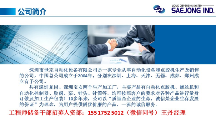 深圳市世宗自动化设备有限公司招聘