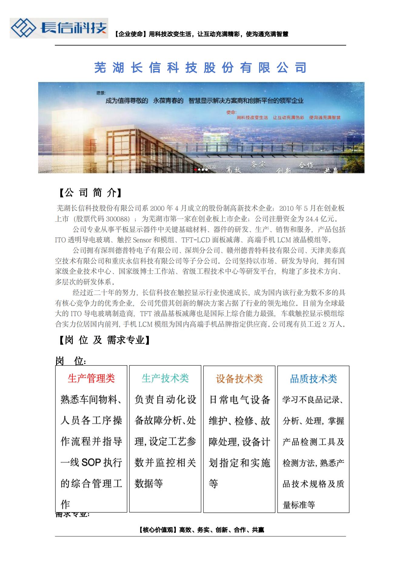 长信科技招聘简章