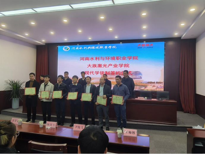 本次拜师仪式是大族激光产业学院开展现代学徒制项目的重要环节,双方确定师徒关系,明确职责,校企双方促进“双导师”育人制度,形成合理、精准、高效的育人机制,让协同育人、双元育人有效落地实施。